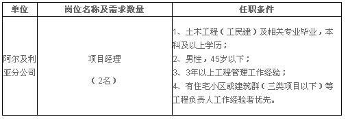 招聘公告(阿爾及利亞分公司項目經理崗位)