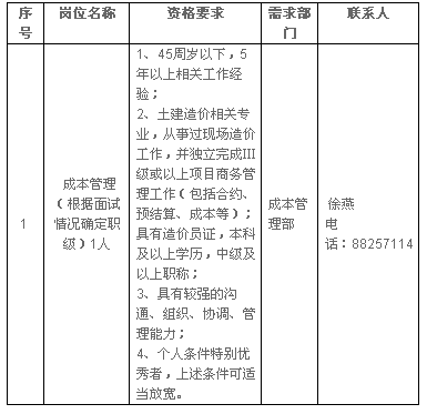 關(guān)于青島建設(shè)集團(tuán)有限公司成本管理部部分崗位的招聘公告