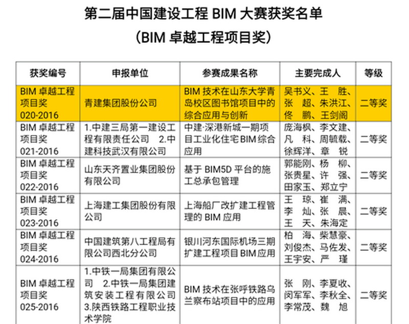 近日,第二屆中國建設工程BIM大賽評獎結果公布。由青建集團申報的“BIM技術在山東大學青島校區圖書館項目中的綜合應用與創新”課題,經過初評、復評、綜評和專家評審委員會評審,憑借突出的創新點和應用效果,榮獲中國建設工程BIM大賽卓越工程項目獎二等獎,繼去年獲得中國建設工程BIM大賽單項獎之后,青建在BIM應用領域再創佳績。