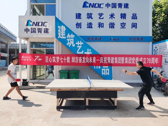 9月2日,齊河縣國家現代農業產業園綜合服務中心項目部邀請項目建設單位、監理單位舉辦體育競賽活動。在乒乓球比賽場上,用鋼筋混凝土澆筑結合模板建造而成的乒乓球臺,是建設者獨有的浪漫。