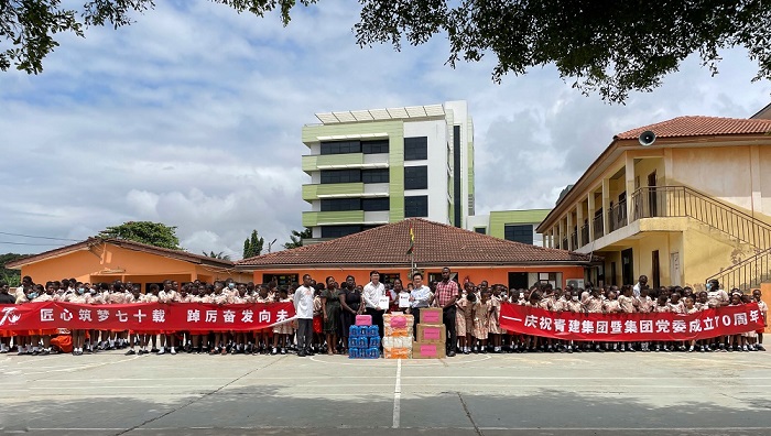 為慶祝集團暨集團黨委成立70周年,加納分公司組織了阿克拉地區項目管理人員對TAC教堂項目觀摩學習,營造爭先創優和“比、學、趕、幫、超”的良好氛圍。加強項目建設的同時,加納分公司還積極履行社會責任,向加納當地學校捐贈學習和生活用品。