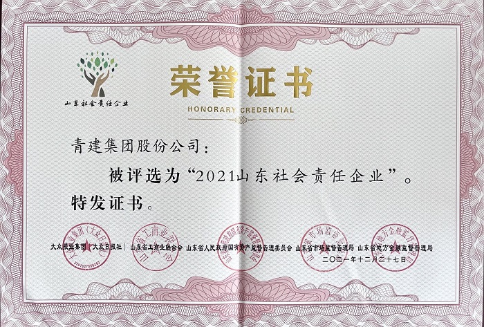 青建集團(tuán)股份公司獲評“2021山東社會責(zé)任企業(yè)”