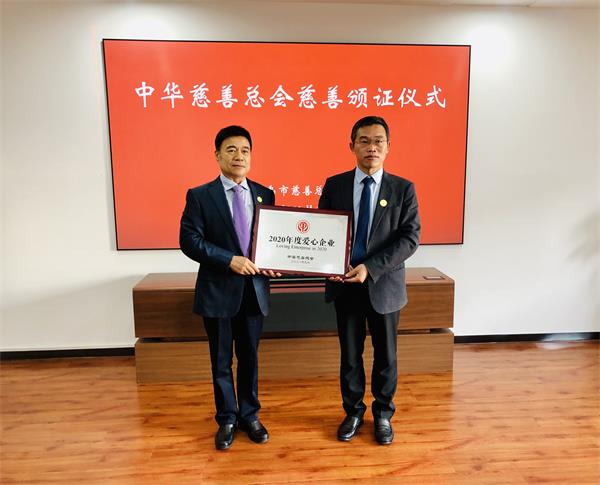 青建集團股份公司榮獲中華慈善總會“2020年度愛心企業”稱號