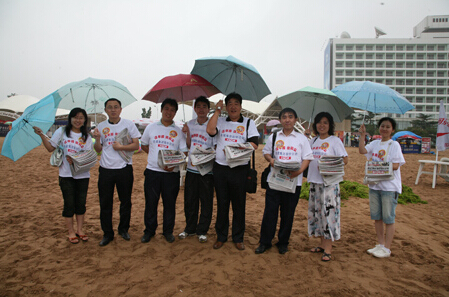 7月18日上午,青建集團組織志愿者在第一海水浴場參加了由青島市紅十字會和《青島早報》聯合主辦的微塵報紙義賣大型公益活動,大家冒著大雨準時來到活動地點,為支持社會公益事業和弘揚微塵精神奉獻一份力量。