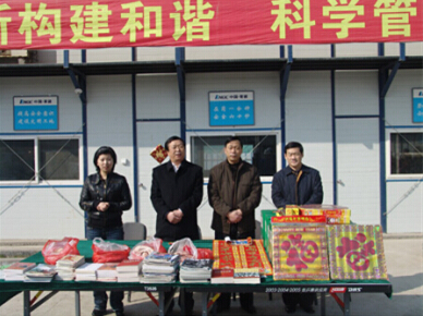 2月4日(農(nóng)歷臘月二十八),集團(tuán)公司黨委書記黃佳高帶隊(duì)到海逸景園工地慰問家在四川、湖北等地,因受雪災(zāi)影響無法回家過年的農(nóng)民工。為讓他們過好春節(jié),工會、團(tuán)委精心準(zhǔn)備了年貨、春聯(lián)、書籍等慰問品,并在正月初二為農(nóng)民工準(zhǔn)備了專場電影。《青島財(cái)經(jīng)日報(bào)》、《青島晚報(bào)》、青島電視臺等媒體相繼報(bào)道了集團(tuán)員工踴躍為南方災(zāi)區(qū)人民捐款,并積極組織向不能返鄉(xiāng)的農(nóng)民工獻(xiàn)愛心活動的新聞。(企業(yè)發(fā)展部 )